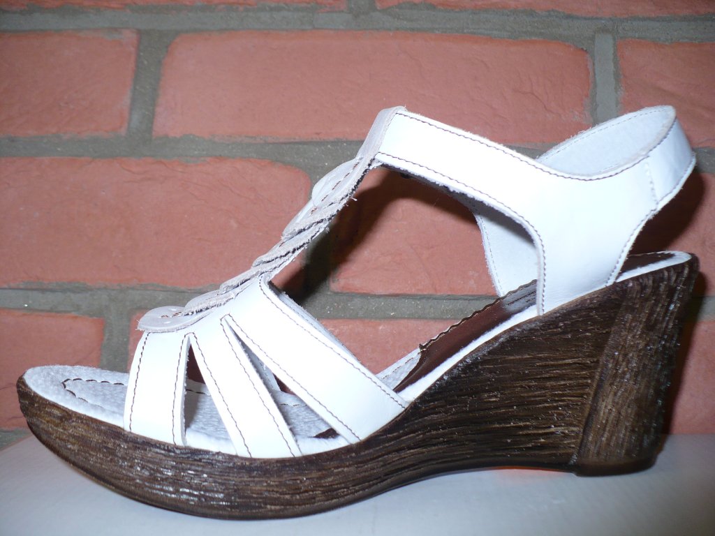 Dámská letní vycházková obuv. Svršek+ podšívka:hovězinová useň. Šíře:G Podešev :PUR,výška podešve 2 až 7 cm. Velmi lehká a pohodlná obuv.Vel.41.