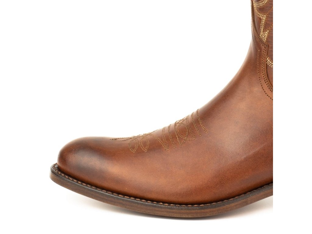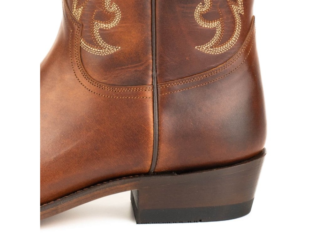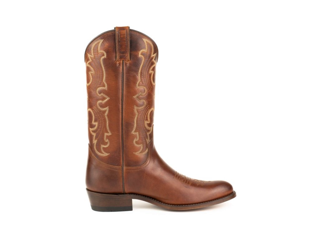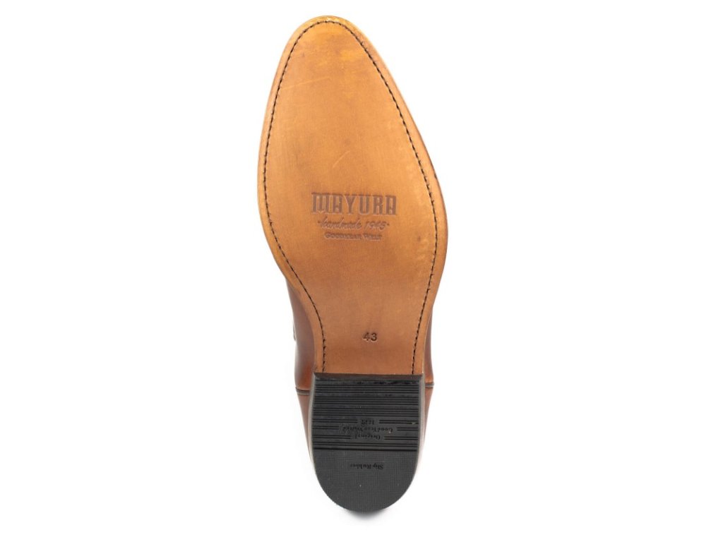 Classic and elegant Mayura unisex boot, with rounded toe, in brown leather, semi-cuban heel of 4 centimeters and with the Goodyear System that characterizes us. An ideal model to start in the cowboy world, or for those who are looking for a more discreet look, but with an authentic cowboy boot profile. A model with more than 25 years of history, which we are relaunching with new colours and finishings, more comfortable and resistant.